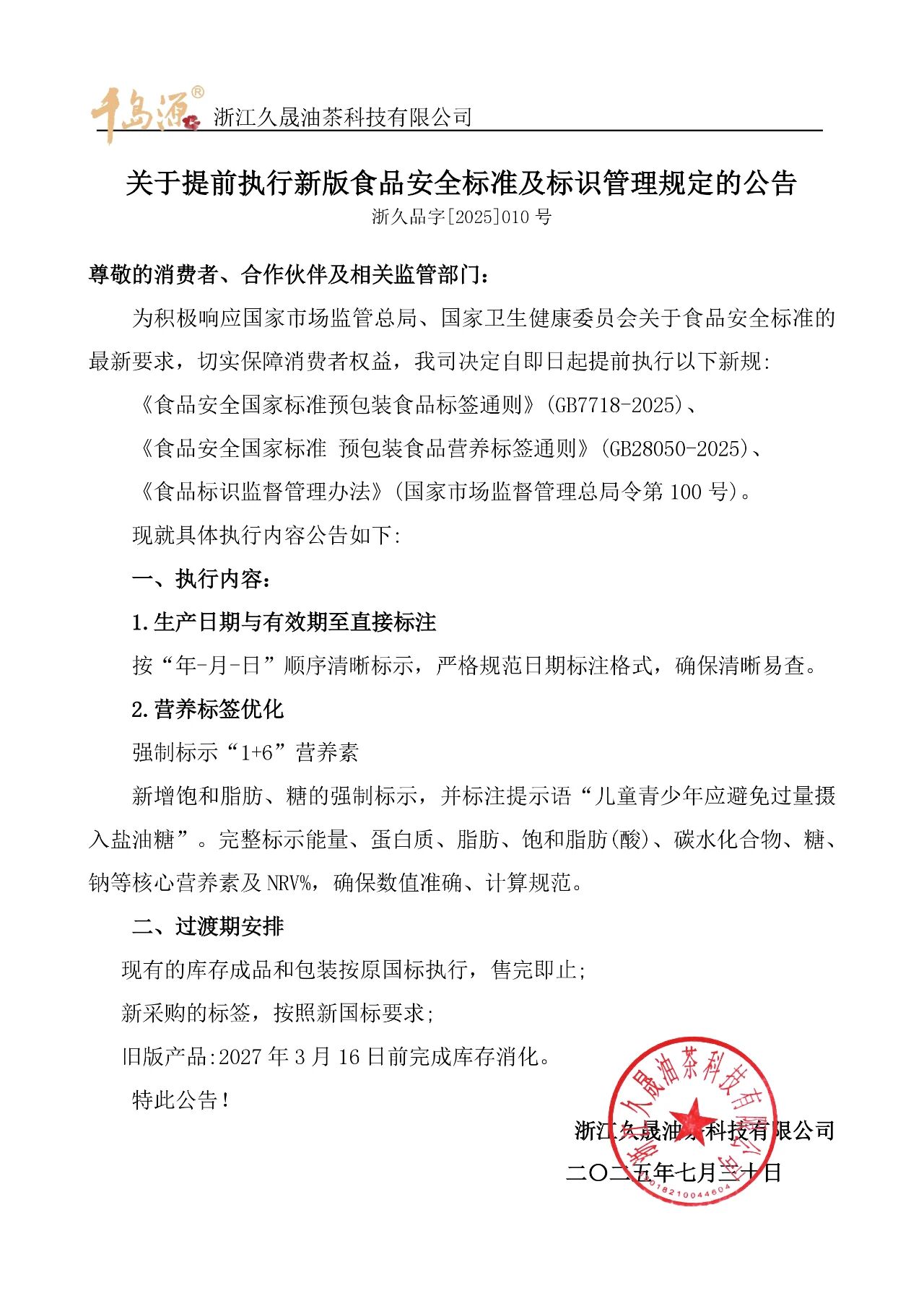 久晟始終將產品質量與安全放在首位,持續為消費者提供更營養、更健康、更安全、更美味的糧油產品。